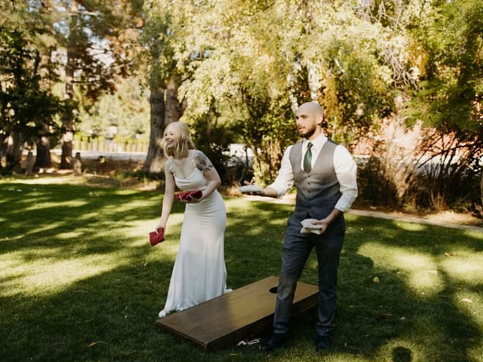 Cornhole Antique White & Dark Stained Wood 2 QTY Per Set