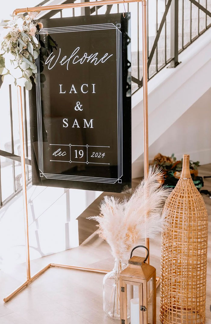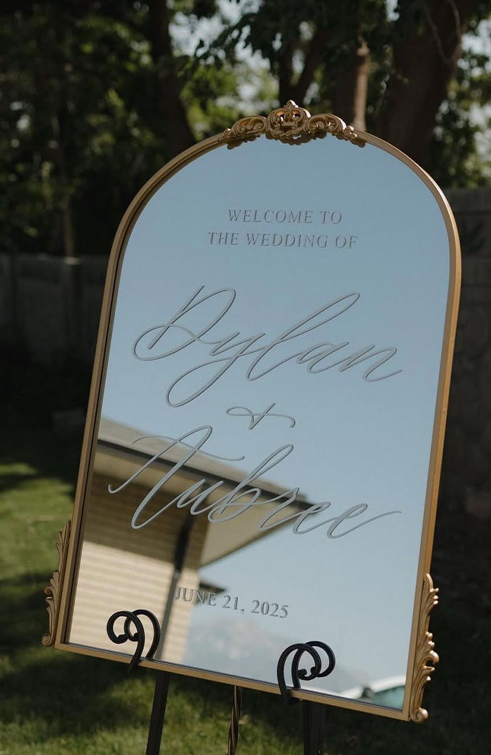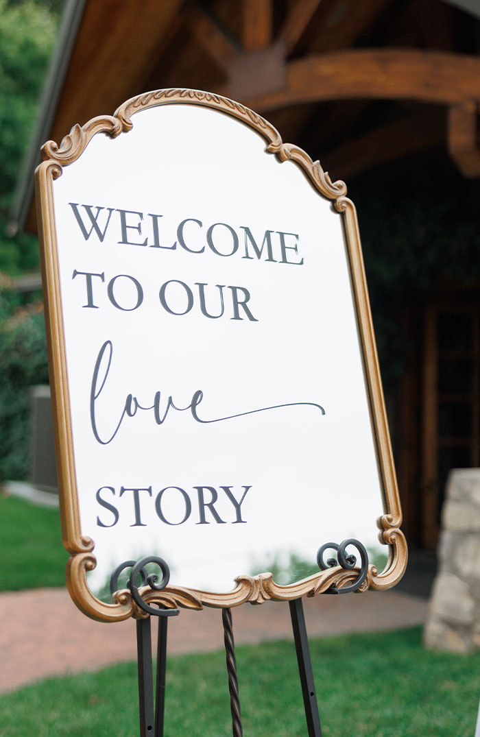Gold Mirror Welcome To Our Love Story 22x30 *Per Piece - Easel & Other Decor Additional