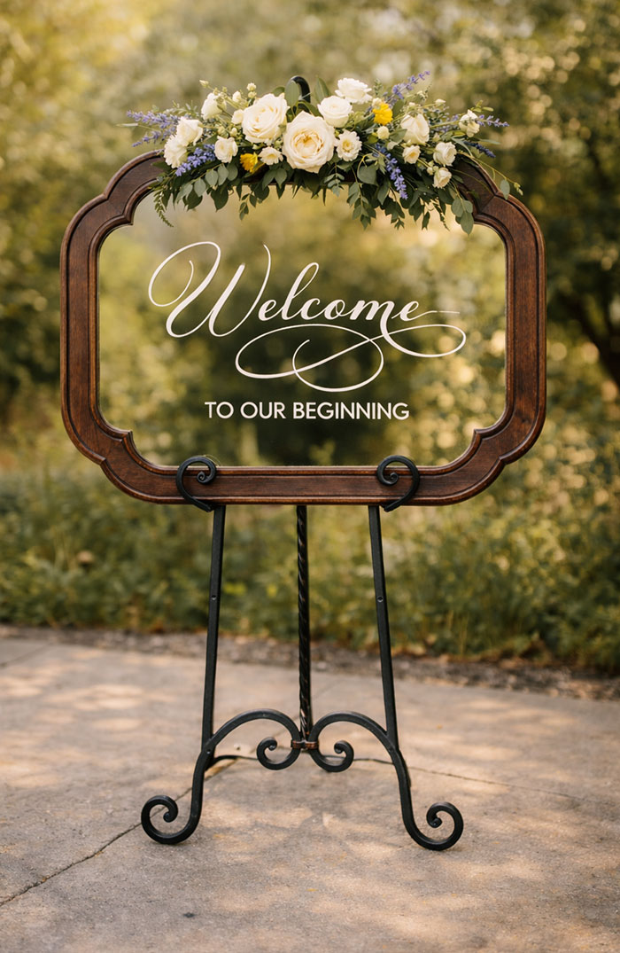 Mirror Wood Welcome To Our Beginning 24x30 *Easel Additional Floral not available